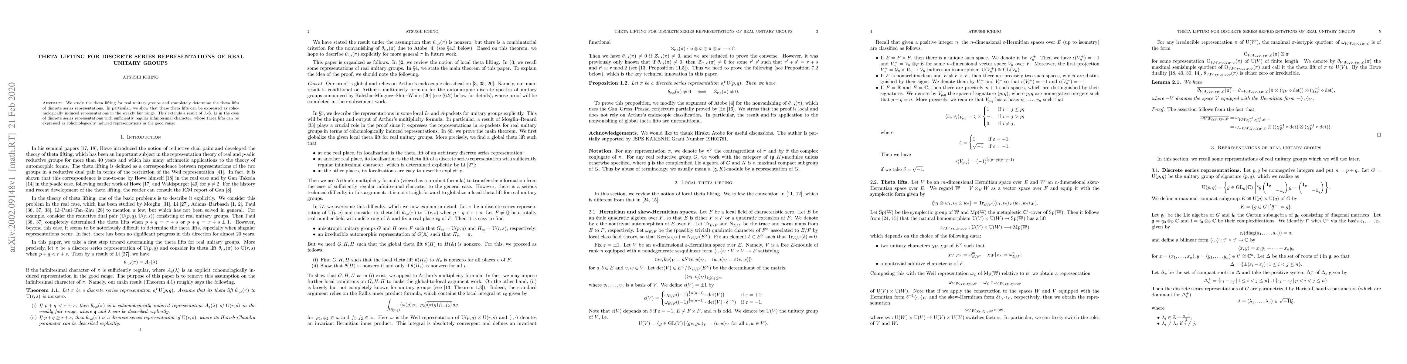We study the theta lifting for real unitary groups and completely determine the theta lifts of discrete series representations. In particular, we show that these theta lifts can be expressed as cohomologically induced representations in the weakly fair range. This extends a result of J.-S. Li in the case of discrete series representations with sufficiently regular infinitesimal character, whose theta lifts can be expressed as cohomologically induced representations in the good range.
