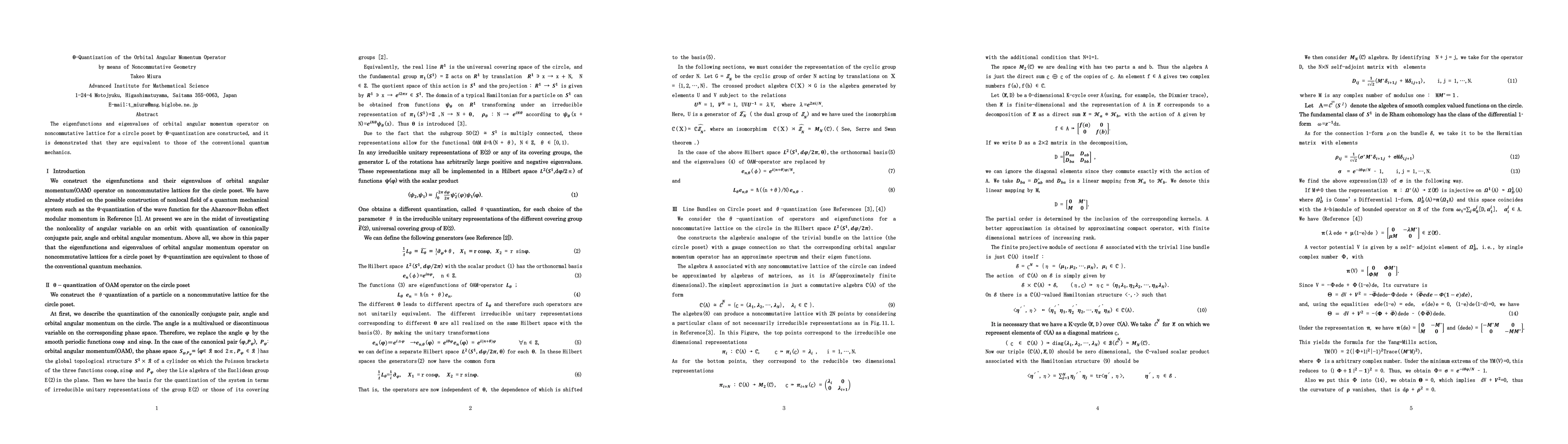 The eigenfunctions and eigenvalues of orbital angular momentum operator on noncommutative lattice for a circle poset by theta-quantization are constructed, and it is demonstrated that they are equivalent to those of the conventional quantum mechanics.