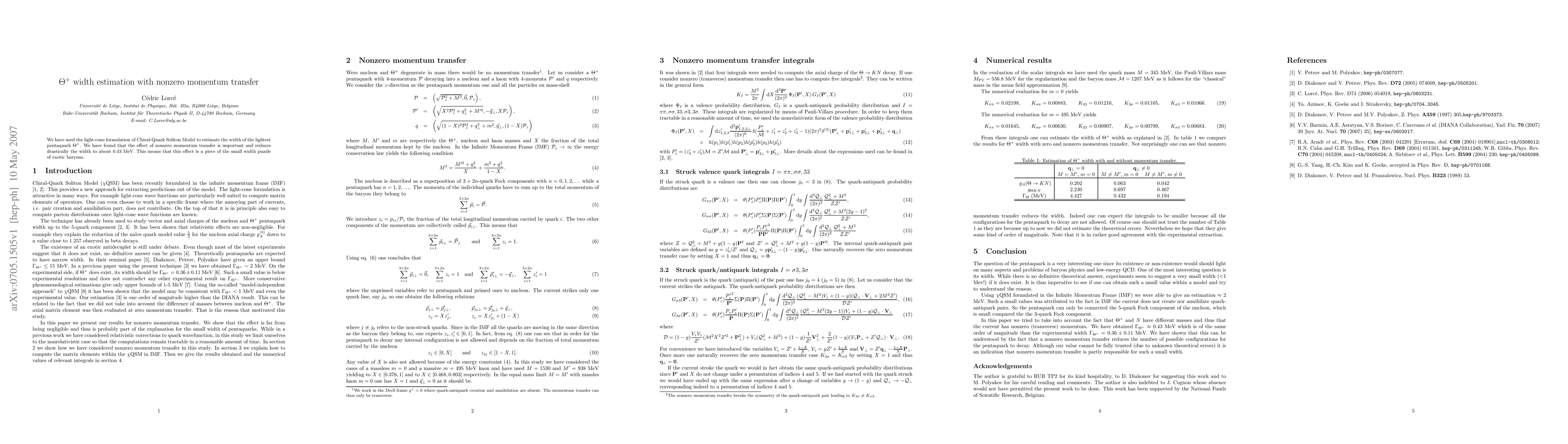 We have used the light-cone formulation of Chiral-Quark Soliton Model to estimate the width of the lightest pentaquark Theta+. We have found that the effect of nonzero momentum transfer is important and reduces drastically the width to about 0.43 MeV. This means that this effect is a piece of the small width puzzle of exotic baryons.