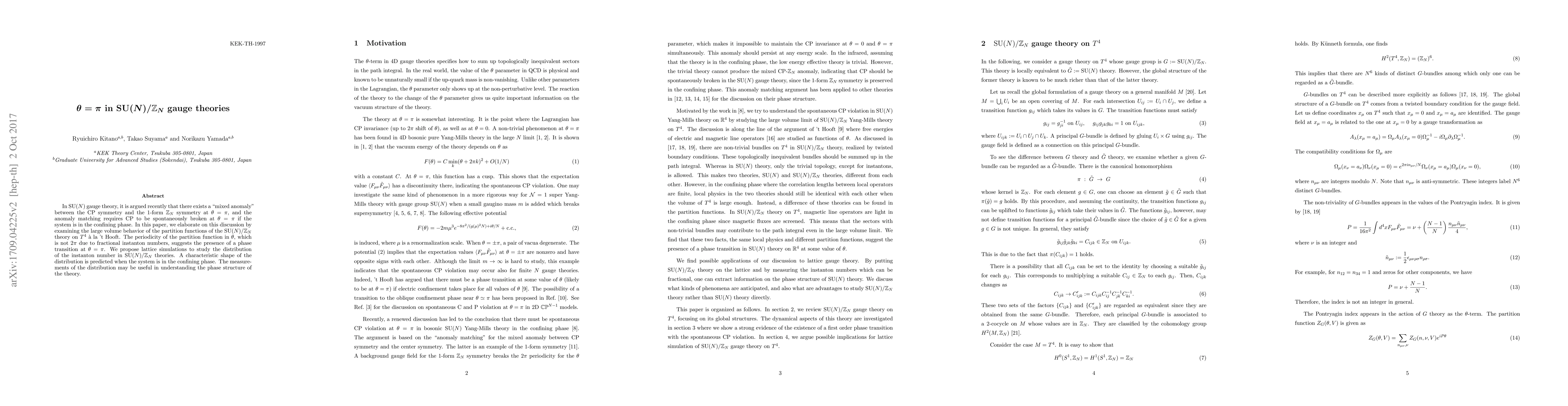 This paper explores the mixed anomaly between CP symmetry and a $\mathbb{Z}_N$ symmetry in $SU(N)$ gauge theory at $\theta=\pi$, suggesting spontaneous CP breaking in the confining phase. It proposes lattice simulations to study instanton number distributions, predicting a distinctive shape indicative of the confining phase.