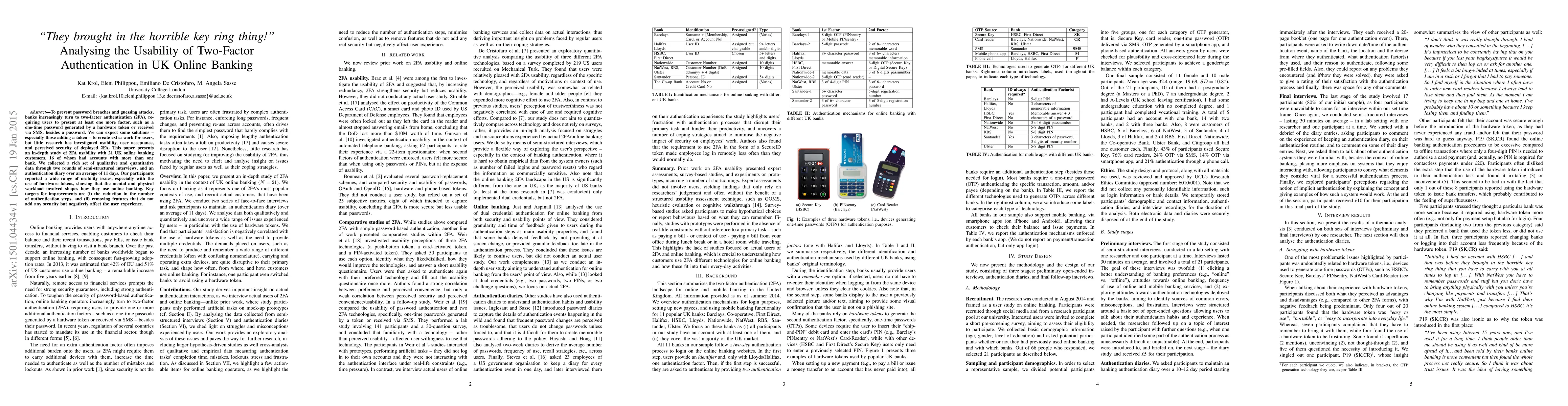 This study explores the usability and user acceptance of two-factor authentication (2FA) in UK online banking, revealing significant usability issues, particularly with hardware tokens, and suggesting improvements to reduce authentication steps and eliminate unnecessary features.