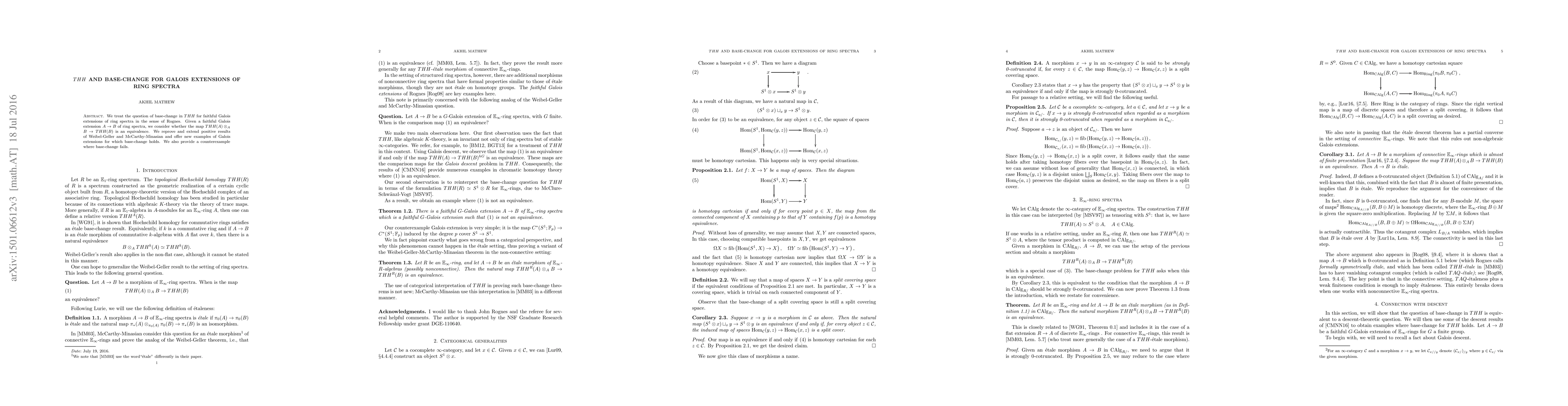 This paper examines base-change properties in $THH$ for faithful Galois extensions of ring spectra, confirming that $THH(A) \otimes_A B \to THH(B)$ is an equivalence under certain conditions and providing counterexamples where it fails. It extends previous results and introduces new examples illustrating these phenomena.