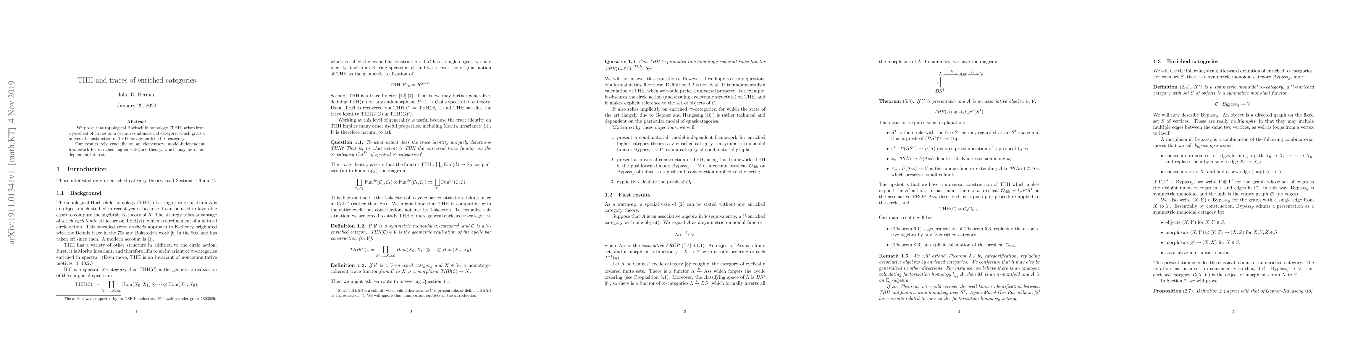 This paper demonstrates that topological Hochschild homology (THH) can be derived from a presheaf of circles on a combinatorial category, providing a universal construction for THH in any enriched infinity category. The study employs a foundational, model-independent framework for enriched higher category theory, which holds significance beyond the specific THH results.