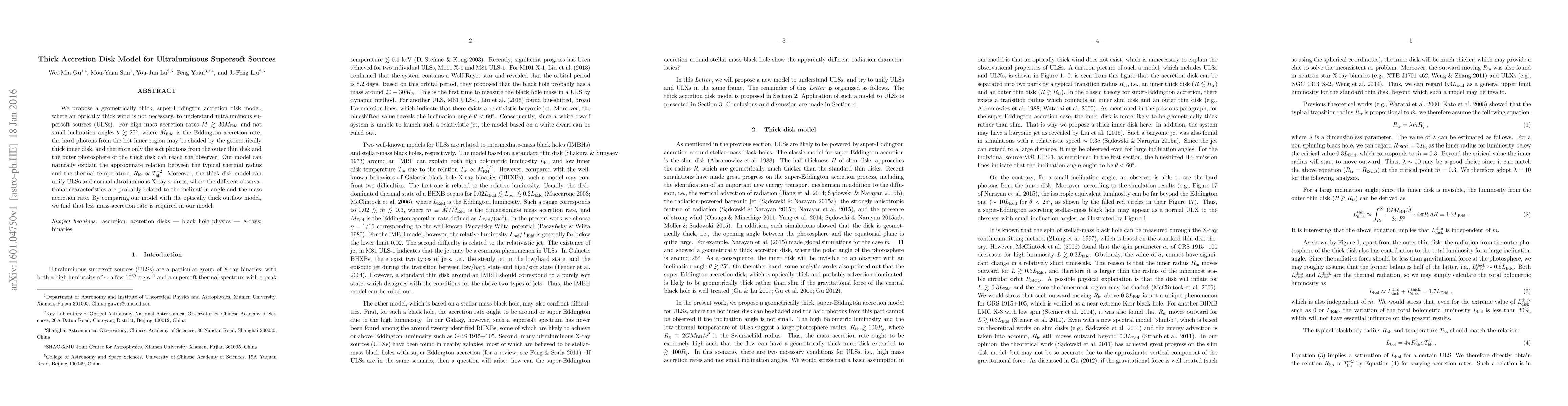 Researchers propose a new model for ultraluminous supersoft sources, suggesting that high mass accretion rates and low inclination angles can explain the observed characteristics of these sources without needing an optically thick wind.