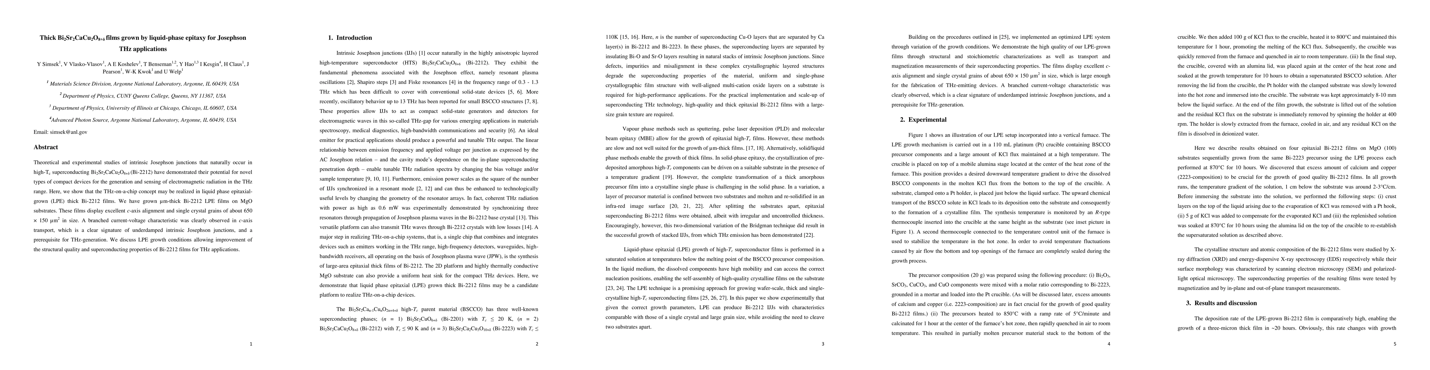 This paper reports on the successful growth of thick Bi2Sr2CaCu2O8+δ (Bi-2212) films via liquid-phase epitaxy for THz applications, demonstrating the potential of intrinsic Josephson junctions in these films for THz generation and sensing. The films exhibit excellent c-axis alignment and underdamped intrinsic Josephson junctions, essential for THz-on-a-chip technology.