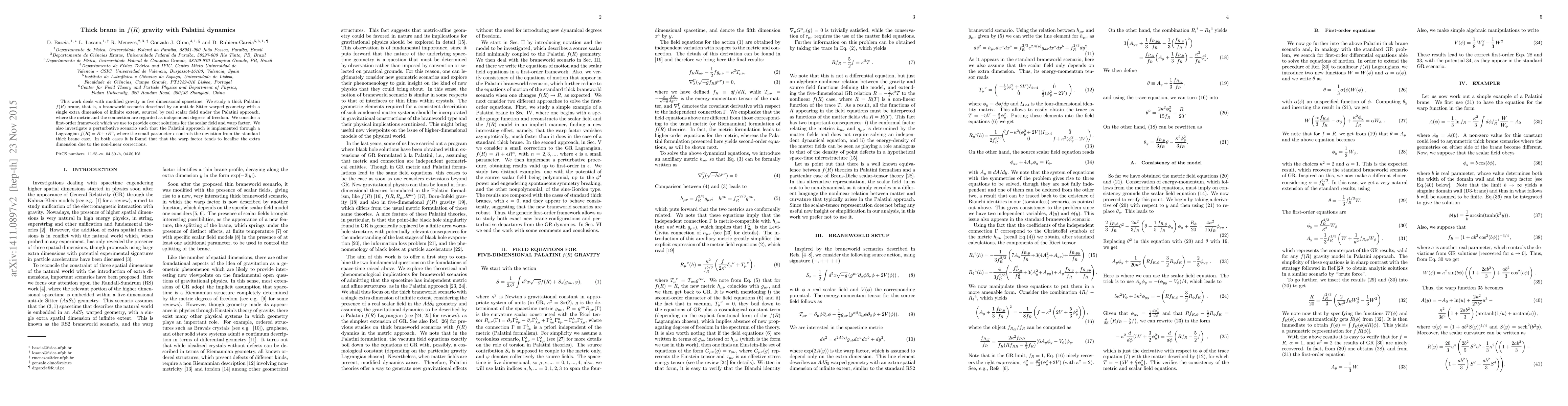 This work deals with modified gravity in five dimensional spacetime. We study a thick Palatini $f(R)$ brane, that is, a braneworld scenario described by an anti-de Sitter warped geometry with a single extra dimension of infinite extent, sourced by real scalar field under the Palatini approach, where the metric and the connection are regarded as independent degrees of freedom. We consider a first-order framework which we use to provide exact solutions for the scalar field and warp factor. We also investigate a perturbative scenario such that the Palatini approach is implemented through a Lagrangian $f(R)=R+\epsilon R^n$, where the small parameter $\epsilon$ controls the deviation from the standard thick brane case.