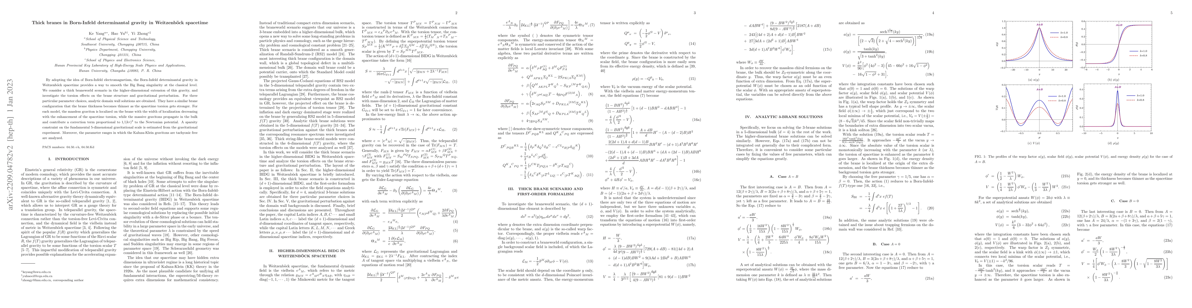 This paper explores the thick brane scenario in Born-Infeld determinantal gravity within Weitzenböck spacetime, smoothing the Big Bang singularity. It reveals that stronger spacetime torsion thins the brane and localizes massless gravitons, while massive gravitons contribute to the Newtonian potential in the bulk.