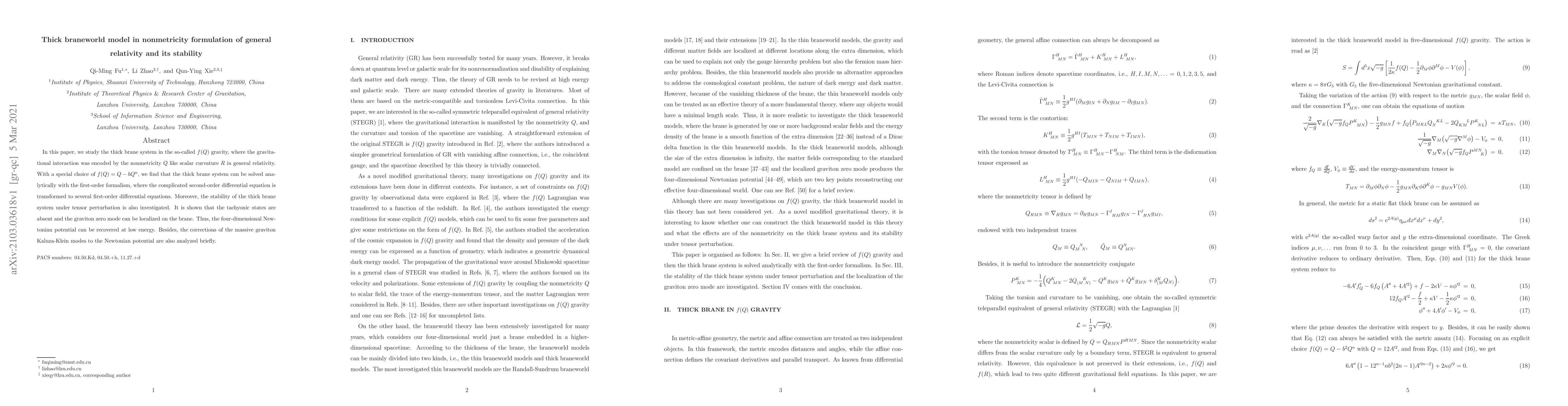 This paper investigates a thick brane model in $f(Q)$ gravity, transforming the second-order differential equation into first-order equations for analytical solutions. It examines the stability of the brane under tensor perturbations and finds no tachyonic states, allowing for the localization of the graviton zero mode and recovery of the four-dimensional Newtonian potential at low energy.