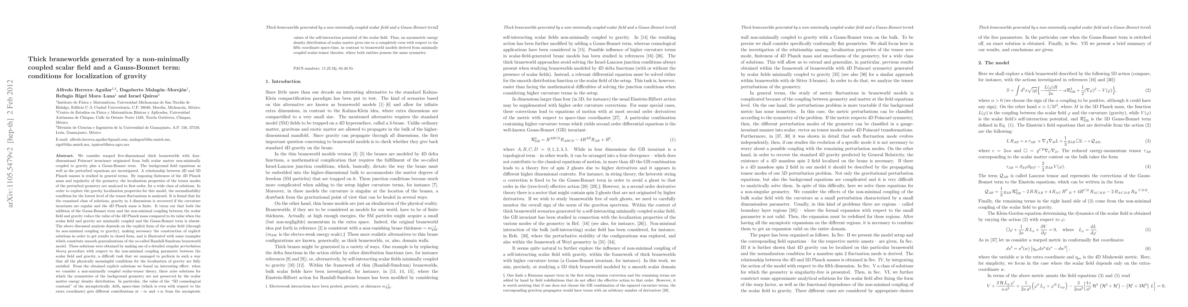 This paper investigates thick braneworlds in a five-dimensional warped space with a non-minimally coupled scalar field and a Gauss-Bonnet term. It finds that gravity localizes in four dimensions under conditions of finite 4D Planck mass and regular geometry, with both the non-minimal coupling and Gauss-Bonnet term reducing the effective 4D Planck mass.