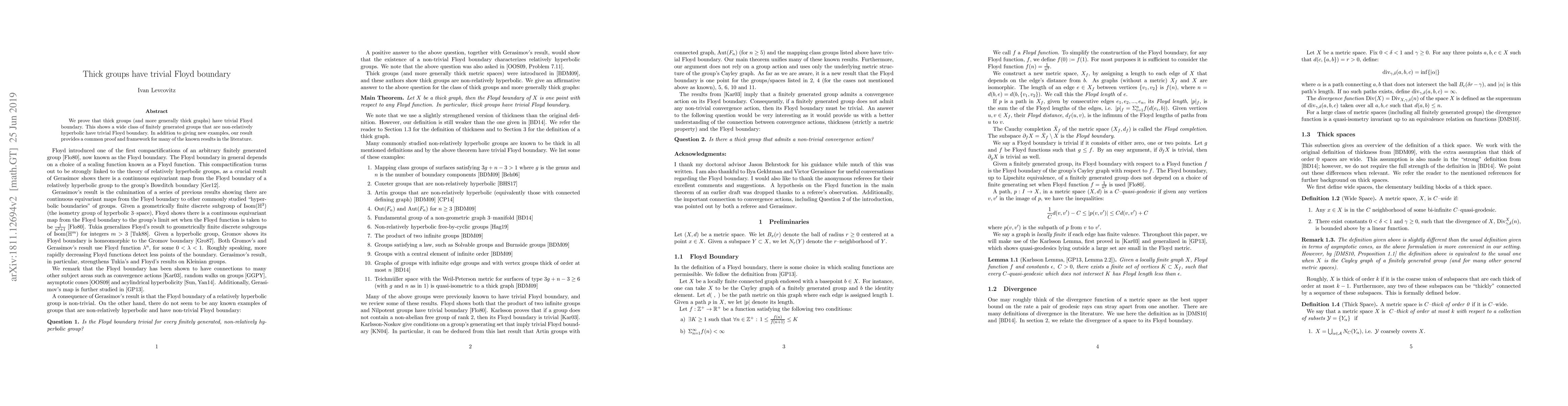 The paper proves that thick groups possess a trivial Floyd boundary, demonstrating that a broad category of non-relatively hyperbolic finitely generated groups lack a non-trivial boundary. This finding unifies and extends existing results in the field.