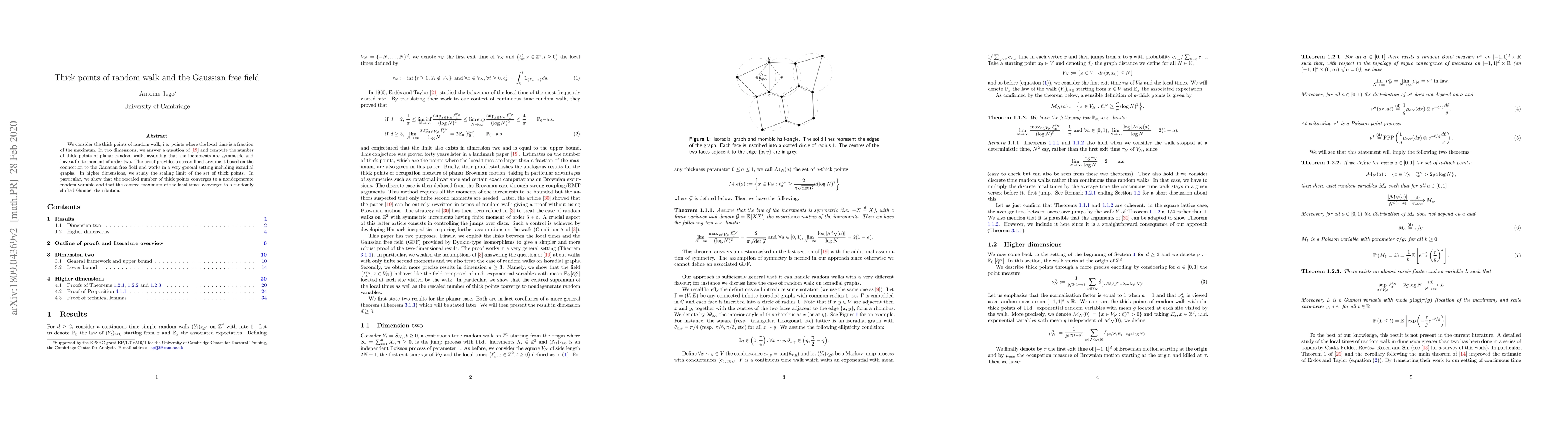 The paper presents a novel proof technique that simplifies the analysis of thick points of random walks using the Gaussian free field, applicable in a broad class of settings.