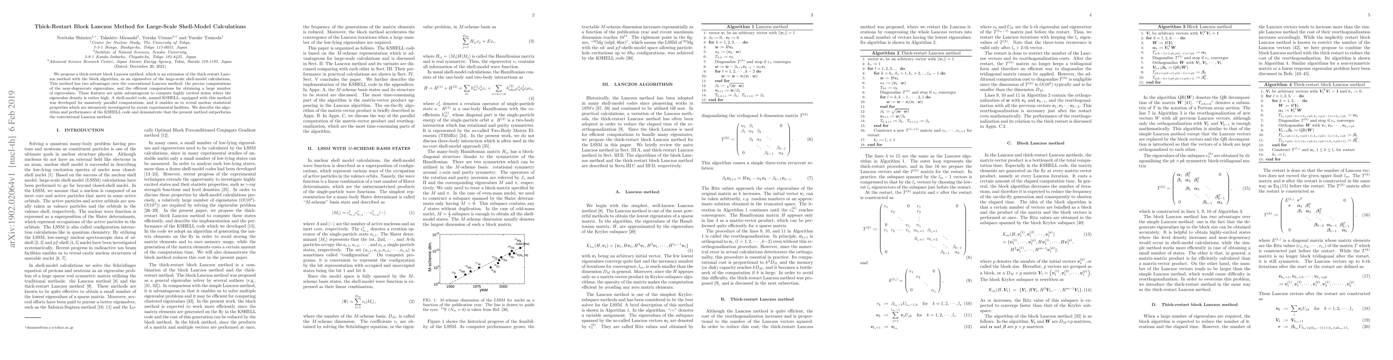 The paper proposes a thick-restart block Lanczos method for large-scale shell-model calculations, offering precise near-degenerate eigenvalue computations and efficient handling of many eigenvalues. The KSHELL code, developed with this method, outperforms conventional methods for computing highly excited nuclear states.