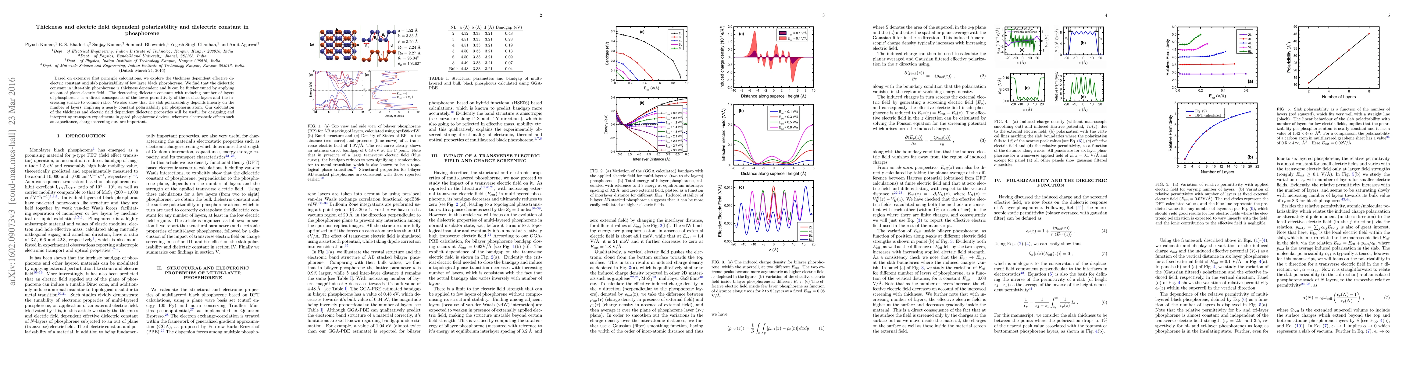 This paper uses first-principle calculations to investigate how the thickness and electric field affect the dielectric constant and polarizability of few-layer black phosphorene. The study finds that the dielectric constant decreases with fewer layers due to surface effects and can be tuned by an out-of-plane electric field, while polarizability remains nearly constant per phosphorus atom.