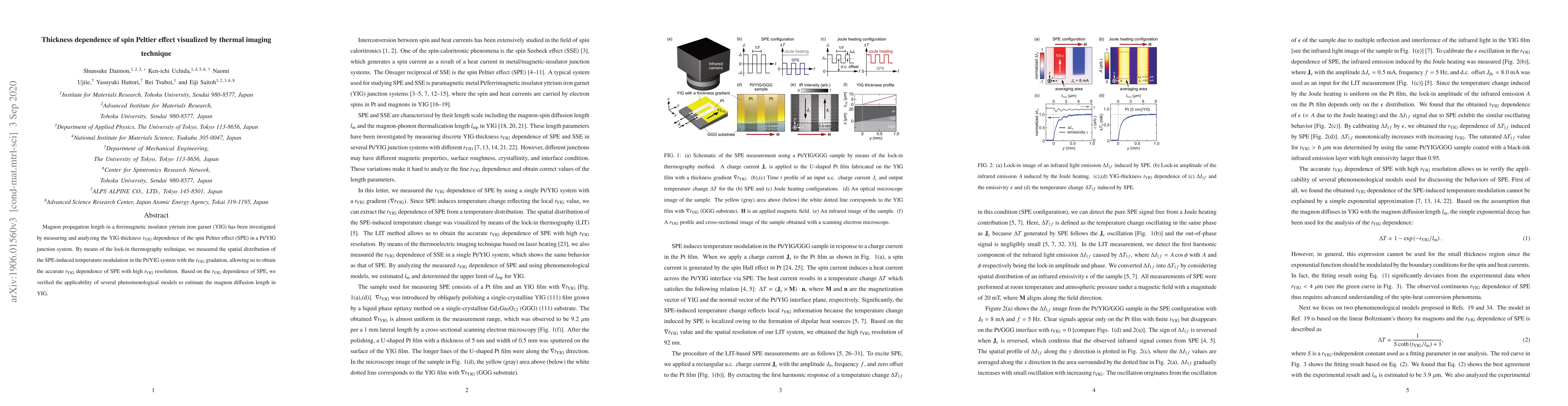 The research employed a Pt/YIG junction system to investigate the spin Peltier effect in yttrium iron garnet (YIG) with varying thickness.
