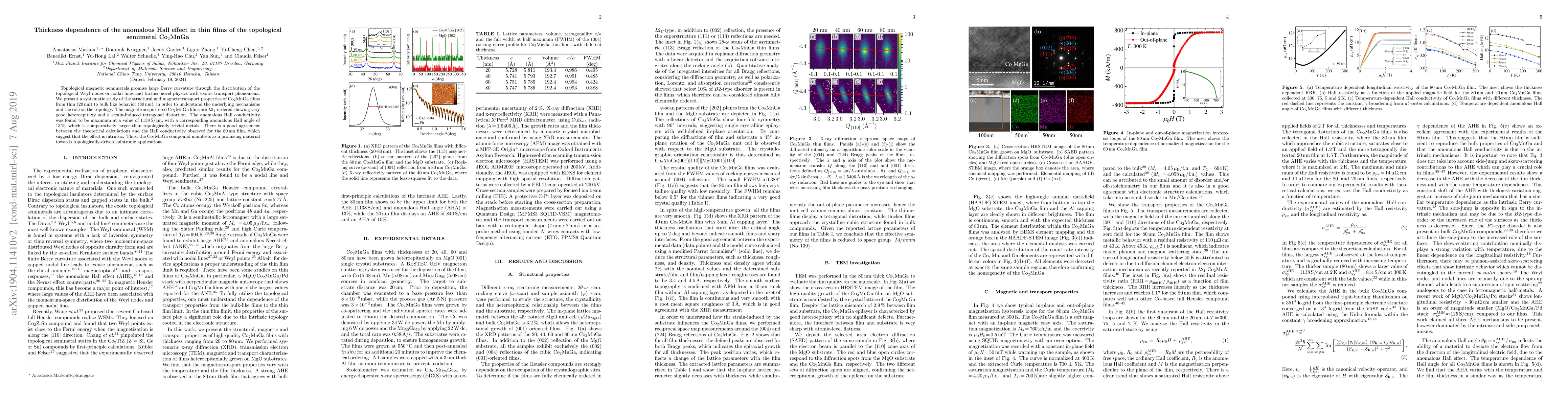 Topological magnetic semimetals promise large Berry curvature through the distribution of the topological Weyl nodes or nodal lines and further novel physics with exotic transport phenomena. We present a systematic study of the structural and magnetotransport properties of Co$_2$MnGa films from thin (20 nm) to bulk like behavior (80 nm), in order to understand the underlying mechanisms and the role on the topology. The magnetron sputtered Co$_2$MnGa films are $L$$2_{\mathrm {1}}$-ordered showing very good heteroepitaxy and a strain-induced tetragonal distortion. The anomalous Hall conductivity was found to be maximum at a value of 1138 S/cm, with a corresponding anomalous Hall angle of 13 %, which is comparatively larger than topologically trivial metals. There is a good agreement between the theoretical calculations and the Hall conductivity observed for the 80 nm film, which suggest that the effect is intrinsic. Thus, the Co$_2$MnGa compound manifests as a promising material towards topologically-driven spintronic applications.