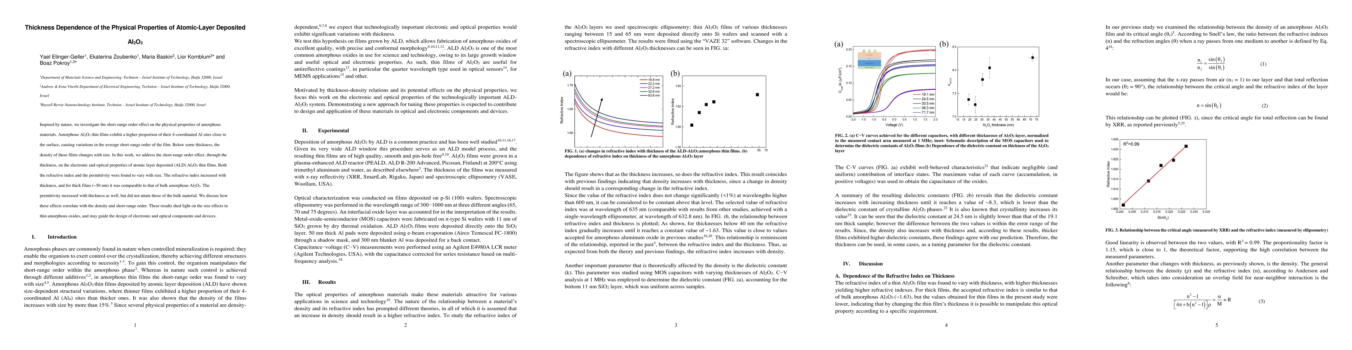 This study examines the thickness-dependent physical properties of atomic layer deposited Al2O3 thin films, finding that both refractive index and permittivity increase with thickness, correlating with changes in density and short-range order, which can inform the design of electronic and optical devices.