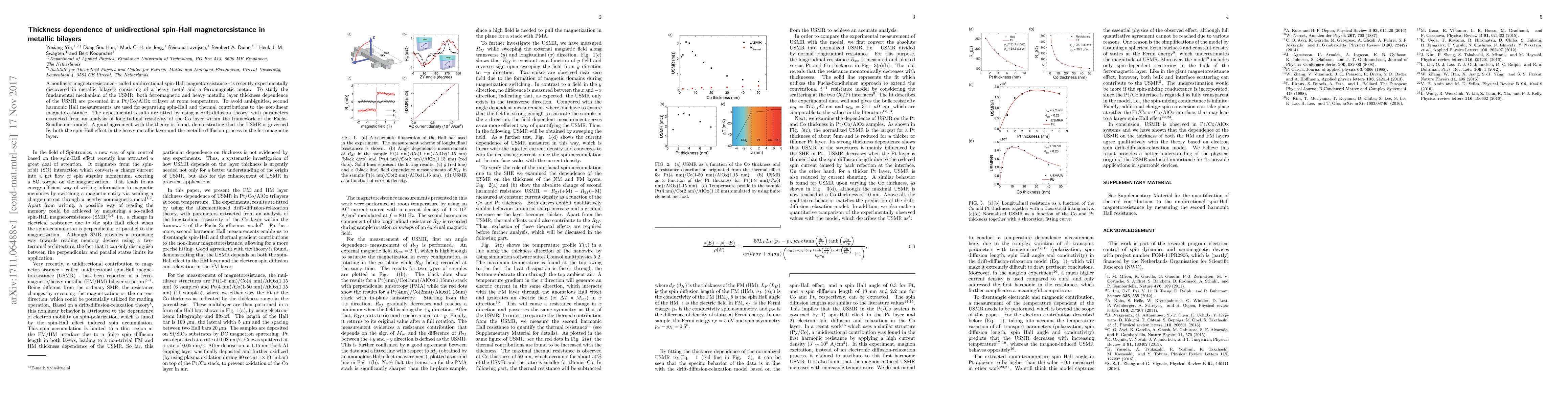 A nonlinear magnetoresistance - called unidirectional spin-Hall magnetoresistance - is recently experimentally discovered in metallic bilayers consisting of a heavy metal and a ferromagnetic metal. To study the fundamental mechanism of the USMR, both ferromagnetic and heavy metallic layer thickness dependence of the USMR are presented in a Pt/Co/AlOx trilayer at room temperature. To avoid ambiguities, second harmonic Hall measurements are used for separating spin-Hall and thermal contributions to the non-linear magnetoresistance. The experimental results are fitted by using a drift-diffusion theory, with parameters extracted from an analysis of longitudinal resistivity of the Co layer within the framework of the Fuchs-Sondheimer model. A good agreement with the theory is found, demonstrating that the USMR is governed by both the spin-Hall effect in the heavy metallic layer and the metallic diffusion process in the ferromagnetic layer.