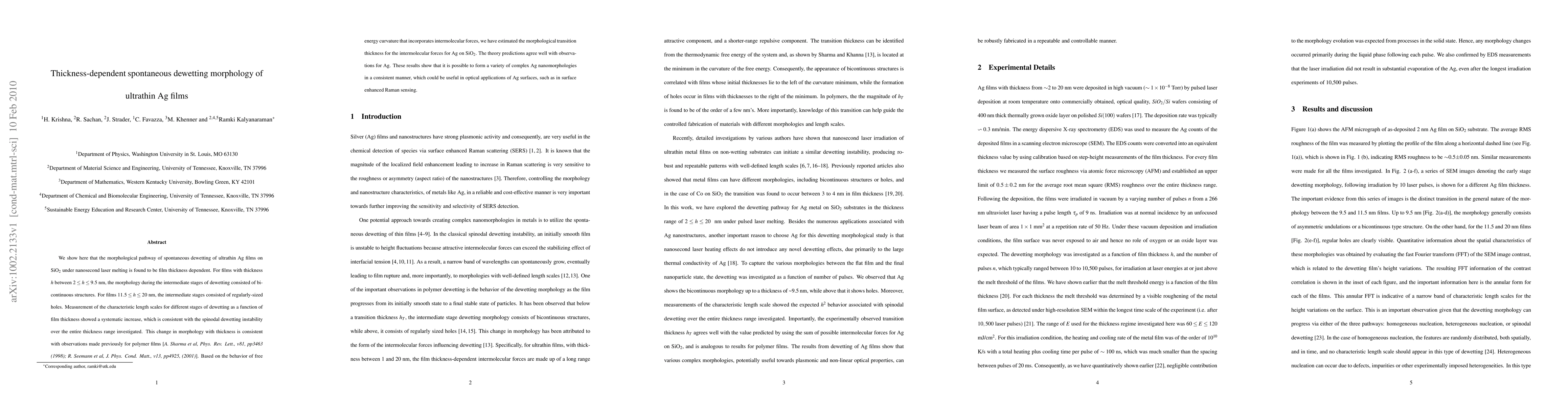 The work presents a detailed analysis of the dewetting behavior of thin Ag films on SiO2 substrates, providing new insights into the underlying mechanisms.