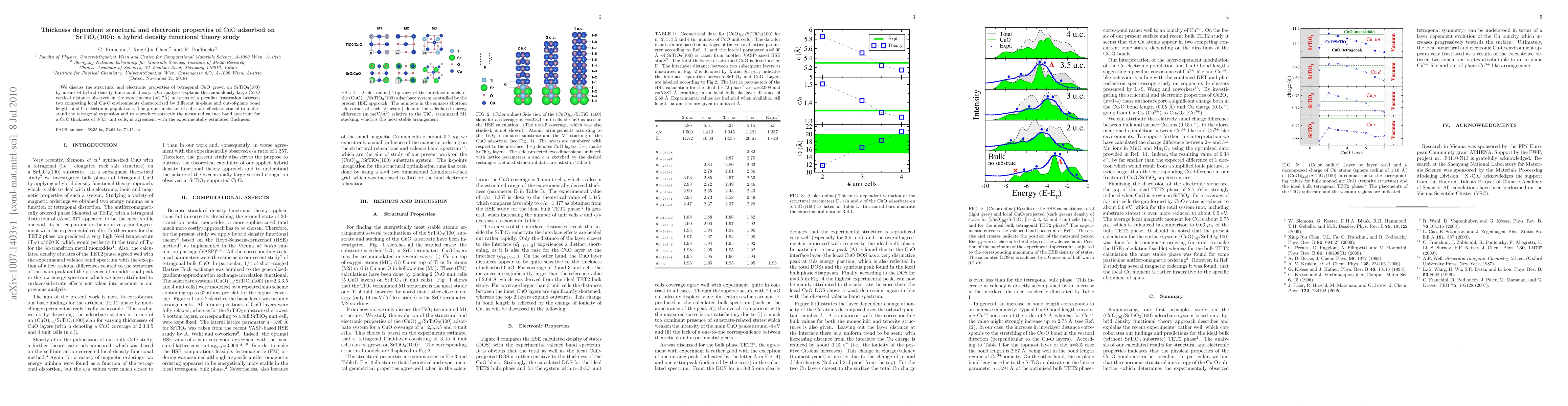 Researchers used hybrid density functional theory to study CuO on SrTiO3, finding that thickness affects its structure and electronic properties. The analysis attributed an anomalously large vertical distance between Cu-O bonds to competing local environments.