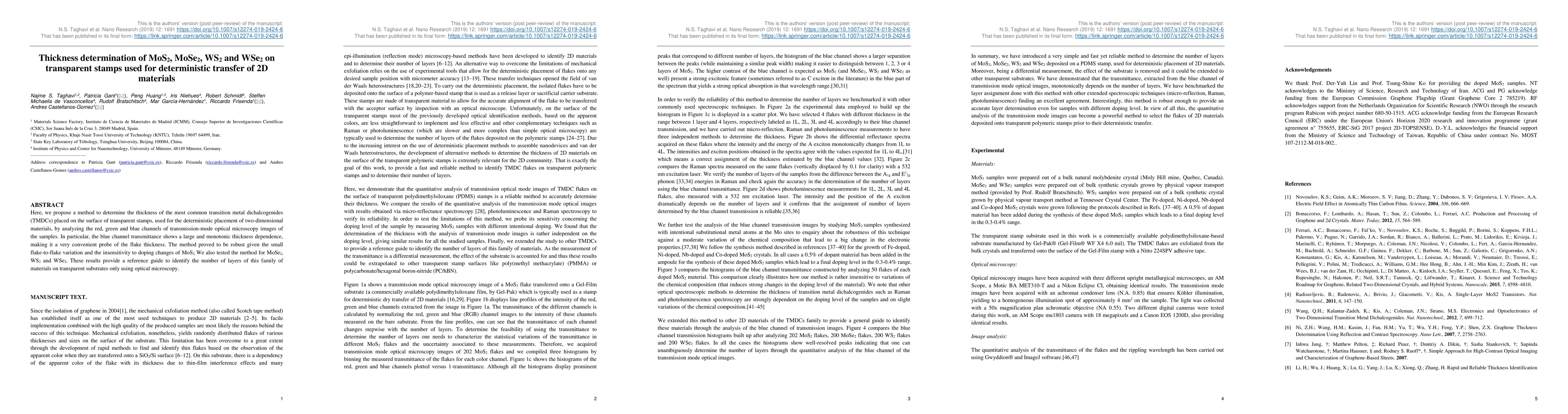 This paper proposes a method to determine the thickness of MoS2, MoSe2, WS2, and WSe2 using optical microscopy by analyzing the blue channel transmittance, which shows a strong and consistent thickness dependence. The method is robust and effective for identifying the number of layers of these TMDCs on transparent stamps.