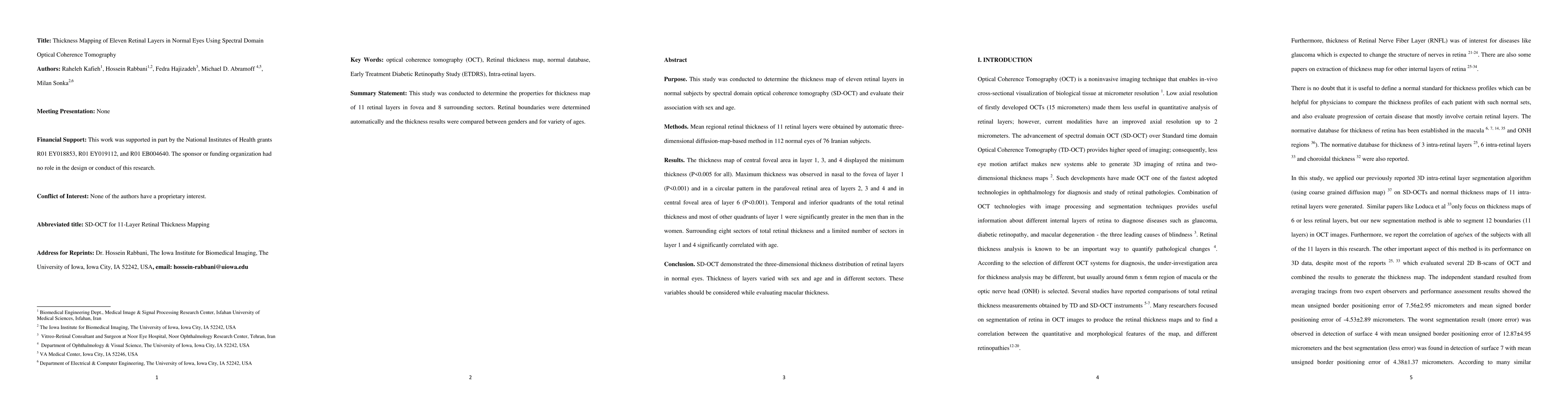 This study used spectral domain optical coherence tomography (SD-OCT) to map the thickness of eleven retinal layers in normal eyes, revealing variations in thickness associated with sex and age. The findings suggest that these factors should be considered when evaluating macular thickness.