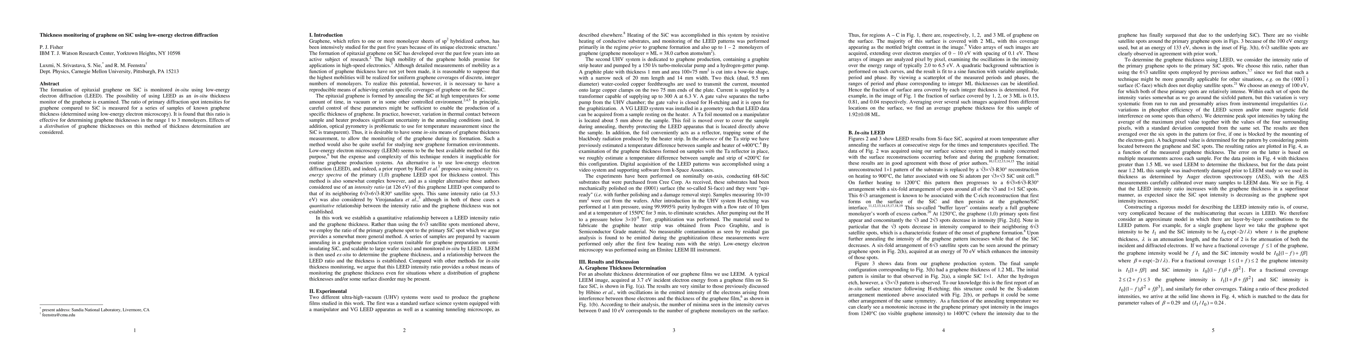 This study uses low-energy electron diffraction (LEED) to monitor the formation of epitaxial graphene on SiC in-situ. The ratio of primary diffraction spot intensities for graphene compared to SiC is found to effectively determine graphene thicknesses from 1 to 3 monolayers, with considerations for thickness distribution effects.