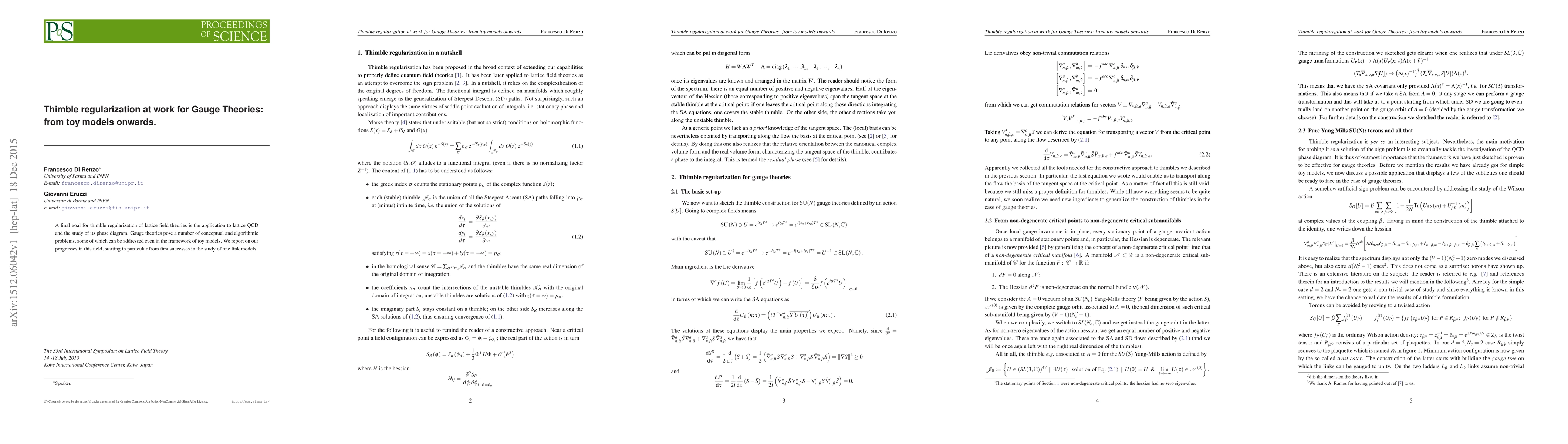 A final goal for thimble regularization of lattice field theories is the application to lattice QCD and the study of its phase diagram. Gauge theories pose a number of conceptual and algorithmic problems, some of which can be addressed even in the framework of toy models. We report on our progresses in this field, starting in particular from first successes in the study of one link models.