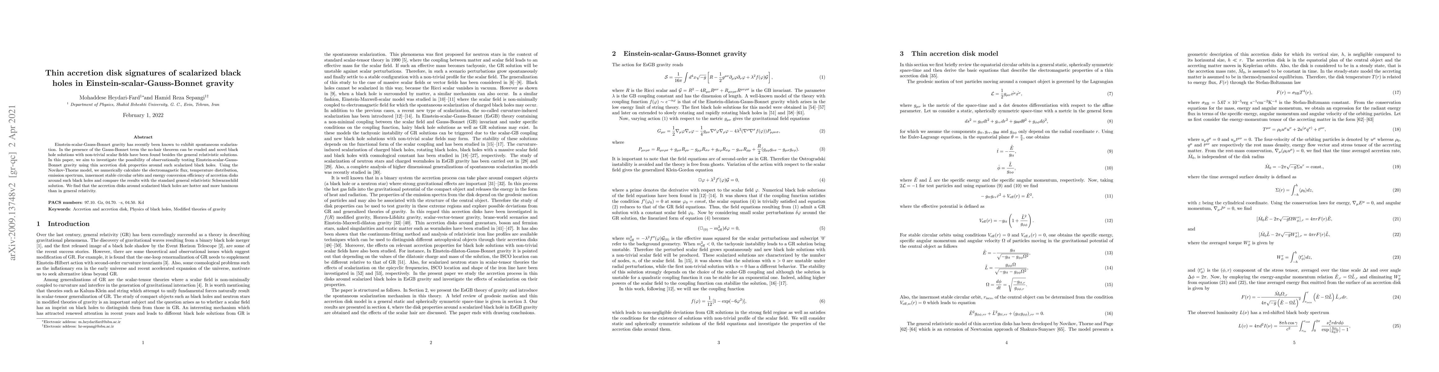 This research explores thin accretion disks around scalarized black holes in Einstein-scalar-Gauss-Bonnet gravity, revealing that they are hotter and more luminous compared to general relativistic solutions. Numerical calculations using the Novikov-Thorne model show significant differences in electromagnetic flux, temperature, emission spectrum, and energy conversion efficiency.