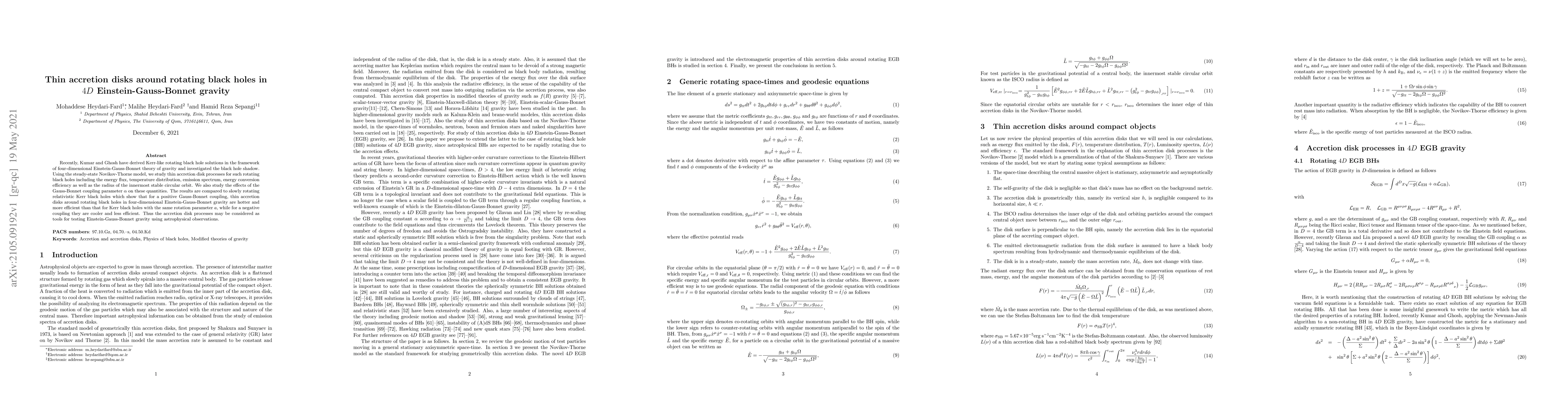 The paper presents a detailed analysis of thin accretion disks around rotating black holes in 4D Einstein-Gauss-Bonnet gravity, providing new insights into the impact of the GB coupling parameter on disk properties and efficiency.