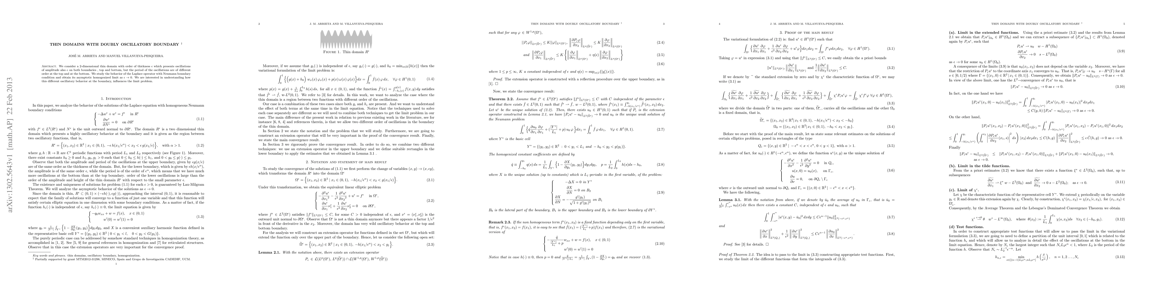 A research paper studies how oscillations on different boundaries of a thin 2D domain with varying periods influence its homogenized limit as the thickness approaches zero.