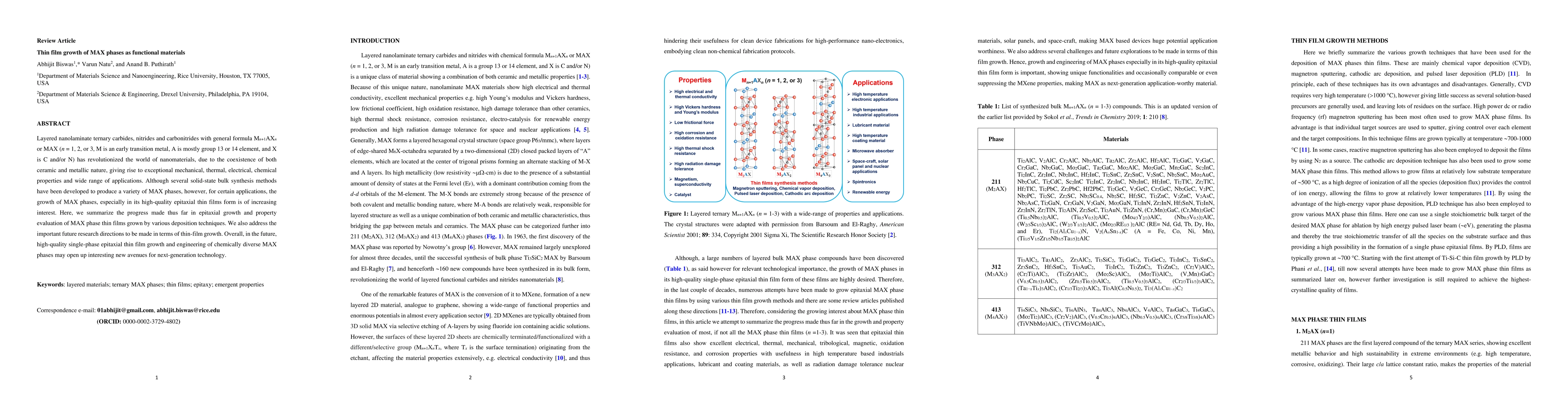 Layered nanolaminate ternary carbides, nitrides and carbonitrides with general formula Mn+1AXn or MAX (n = 1, 2, or 3, M is an early transition metal, A is mostly group 13 or 14 element, and X is C and/or N) has revolutionized the world of nanomaterials, due to the coexistence of both ceramic and metallic nature, giving rise to exceptional mechanical, thermal, electrical, chemical properties and wide range of applications. Although several solid-state bulk synthesis methods have been developed to produce a variety of MAX phases, however, for certain applications, the growth of MAX phases, especially in its high-quality epitaxial thin films form is of increasing interest. Here, we summarize the progress made thus far in epitaxial growth and property evaluation of MAX phase thin films grown by various deposition techniques. We also address the important future research directions to be made in terms of thin-film growth. Overall, in the future, high-quality single-phase epitaxial thin film growth and engineering of chemically diverse MAX phases may open up interesting new avenues for next-generation technology.