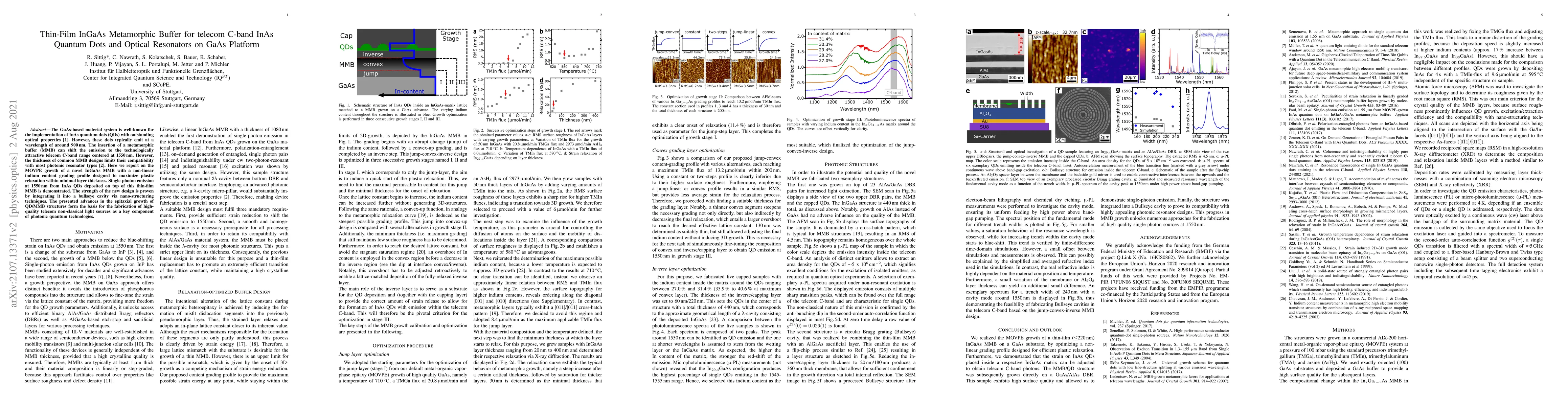 The paper presents a novel thin-film InGaAs metamorphic buffer design with a non-linear indium content grading profile, optimized for minimal thickness while maximizing plastic relaxation, enabling single-photon emission at 1550nm from InAs quantum dots.