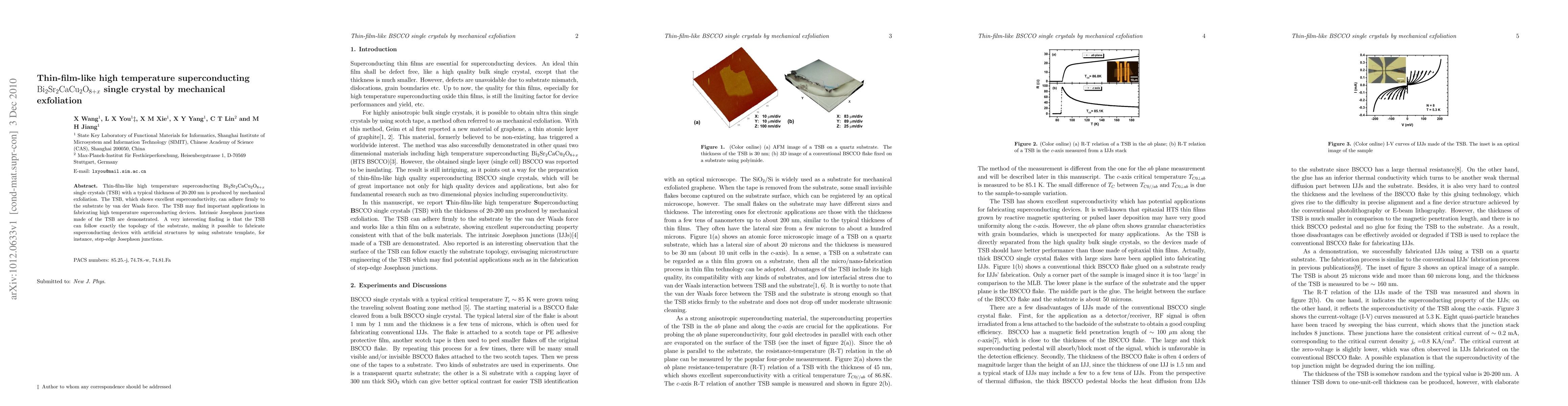 Thin-film-like high temperature superconducting Bi2Sr2CaCu2O8+x single crystals (TSB) with a typical thickness of 20-200 nm is produced by mechanical exfoliation. The TSB, which shows excellent superconductivity, can adhere firmly to the substrate by van der Waals force. The TSB may find important applications in fabricating high temperature superconducting devices. Intrinsic Josephson junctions made of the TSB are demonstrated. A very interesting finding is that the TSB can follow exactly the topology of the substrate, making it possible to fabricate superconducting devices with artificial structures by using substrate template, for instance, step-edge Josephson junctions.