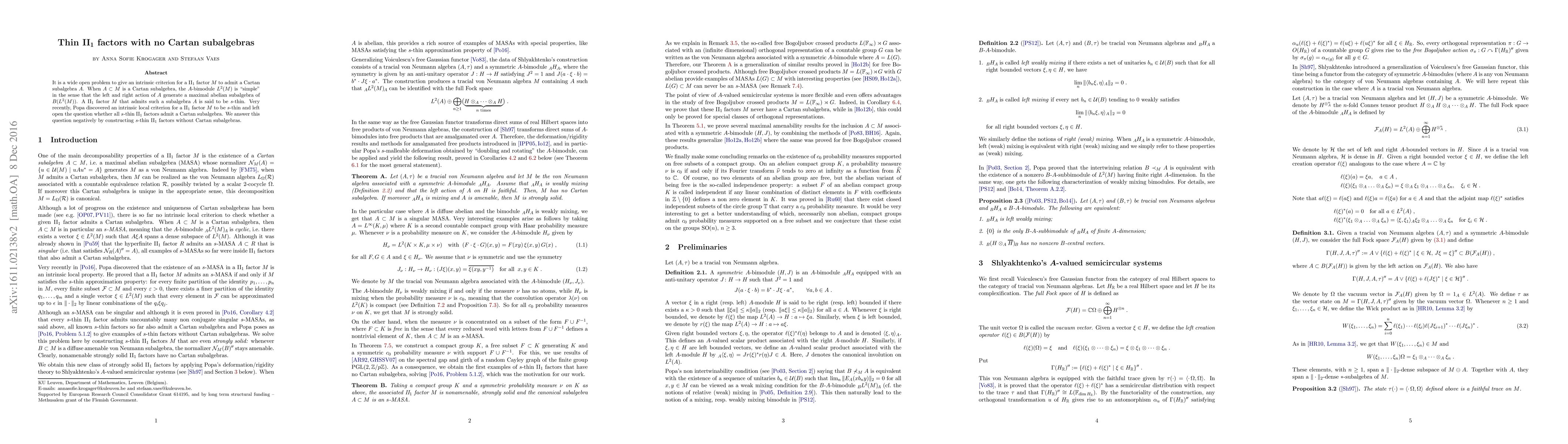 This paper constructs s-thin II_1 factors—those admitting a Cartan subalgebra $A$ where $L^2(M)$ is simple—that do not contain any Cartan subalgebras, thus answering Popa's question negatively. The findings contribute to the ongoing exploration of intrinsic criteria for II_1 factors.