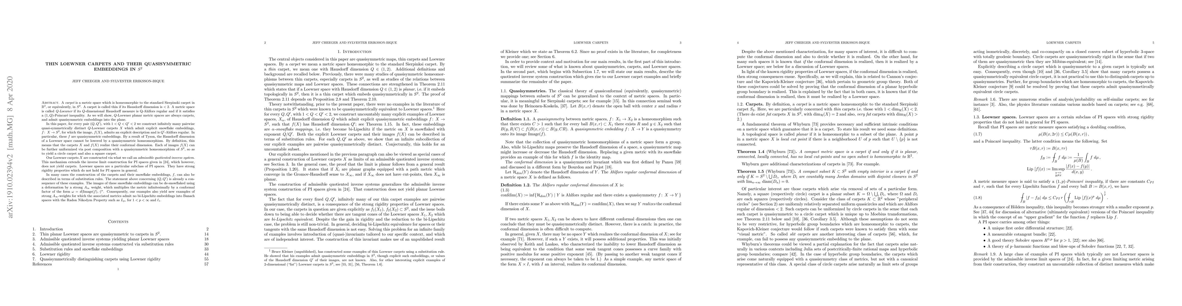 carpet in $\mathbb{R}^2$, or equivalently, in $S^2$. A carpet is called thin if