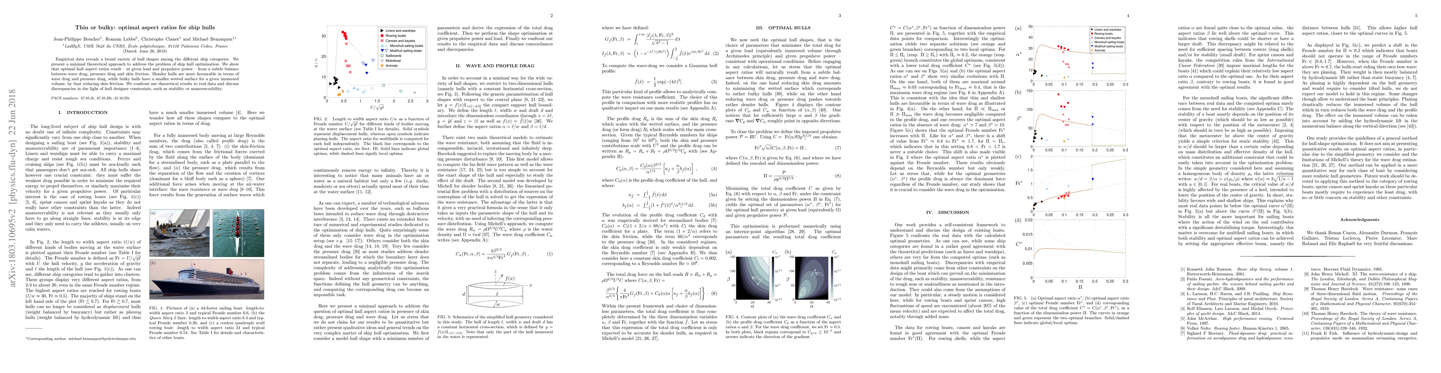 Empirical data reveals a broad variety of hull shapes among the different ship categories. We present a minimal theoretical approach to address the problem of ship hull optimisation. We show that optimal hull aspect ratios result -- at given load and propulsive power -- from a subtle balance between wave drag, pressure drag and skin friction. Slender hulls are more favourable in terms of wave drag and pressure drag, while bulky hulls have a smaller wetted surface for a given immersed volume, by that reducing skin friction. We confront our theoretical results to real data and discuss discrepancies in the light of hull designer constraints, such as stability or manoeuvrability.