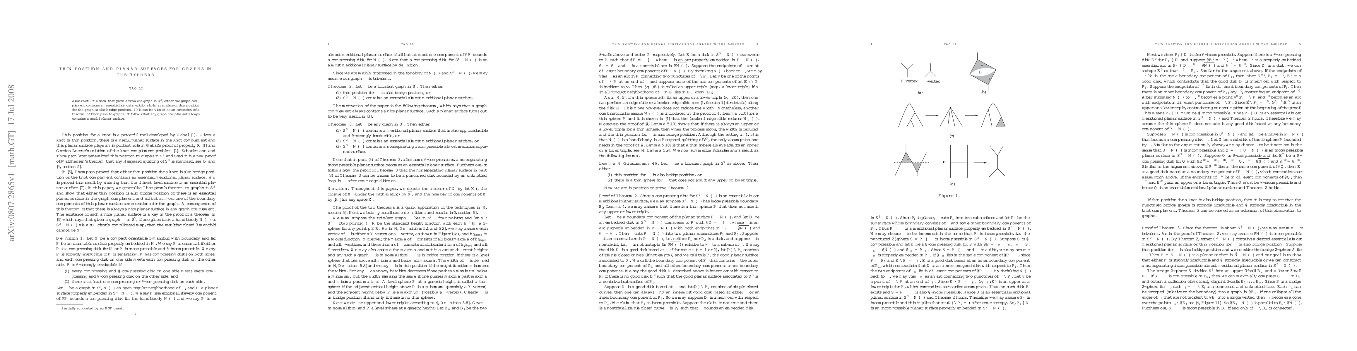 The research shows that in a 3-sphere, either a graph has an essential planar surface or its thin position is also bridge position, implying any graph complement contains a useful planar surface.