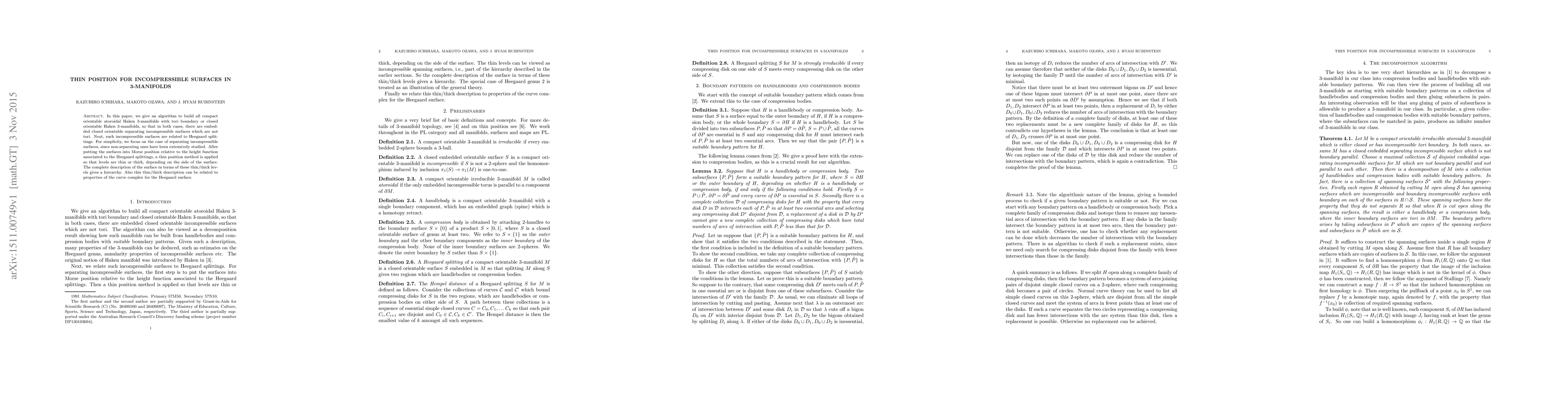 This paper develops an algorithm to identify and categorize all compact orientable Haken 3-manifolds with embedded, non-tori separating incompressible surfaces, establishing a thin position method for these surfaces relative to Heegaard splittings and linking their thin/thick levels to properties of the curve complex.