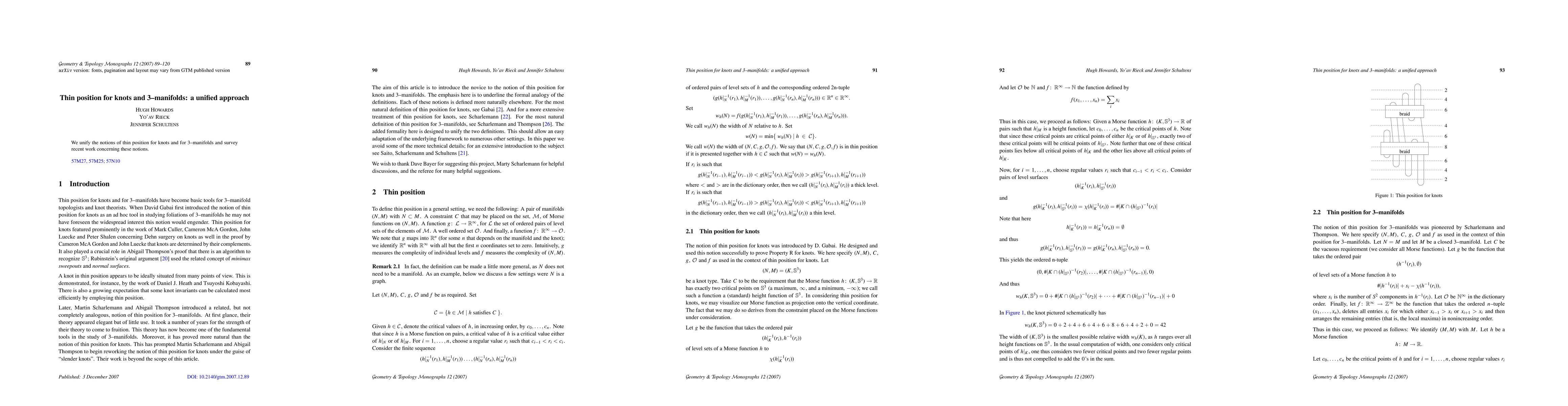 Summary: This paper unifies the concept of thin position for both knots and 3-manifolds, providing a comprehensive review of recent advancements in these areas. The study aims to bridge the understanding of these geometric notions across different topological objects.