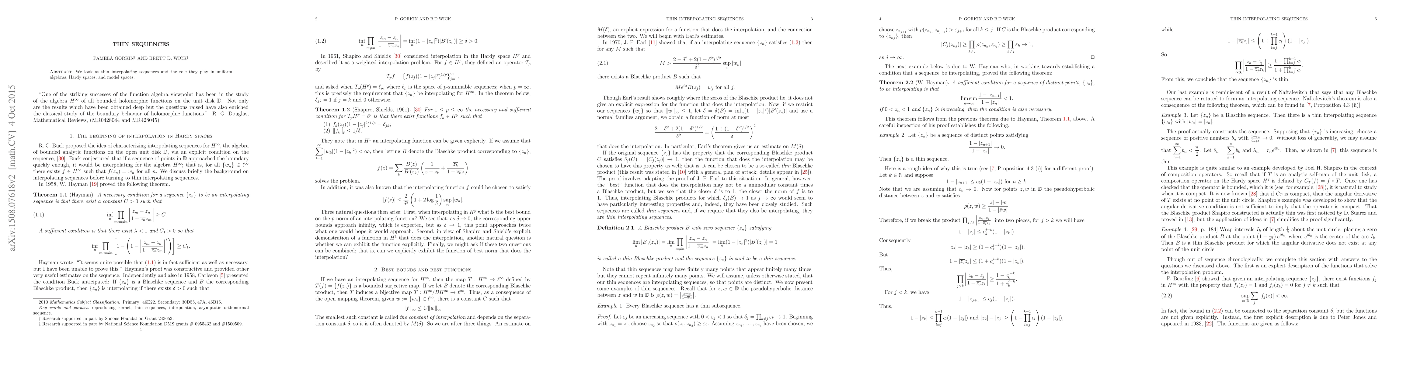 We look at thin interpolating sequences and the role they play in uniform algebras, Hardy spaces, and model spaces.