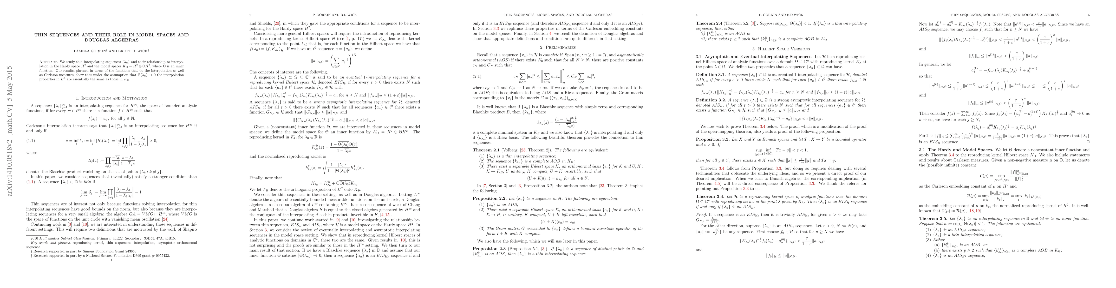 This research explores thin interpolating sequences and their impact on model spaces and Douglas algebras. It reveals that under specific conditions, interpolation properties in the Hardy space $H^2$ mirror those in model spaces $K_Theta$, offering insights into function behavior and Carleson measures.
