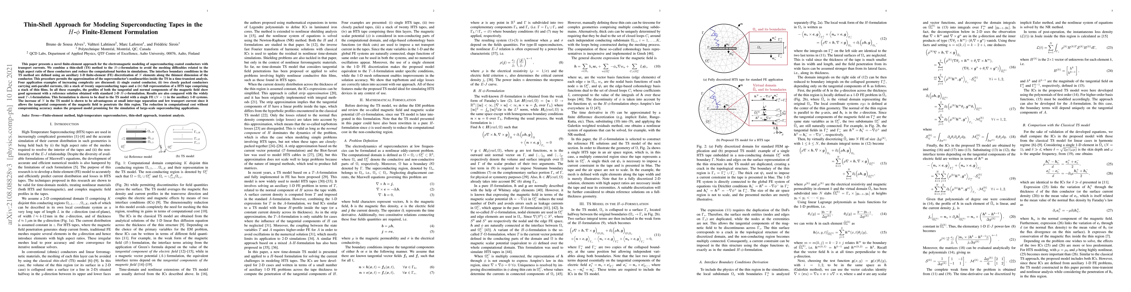 This paper introduces a novel finite-element method combining thin-shell and $H$-$\phi$ formulations to model superconducting tapes, addressing meshing challenges and reducing computational costs. The method shows good agreement with standard 2-D $H$-$\phi$ and $T$-$A$ formulations, demonstrating its potential for large-scale superconducting applications.