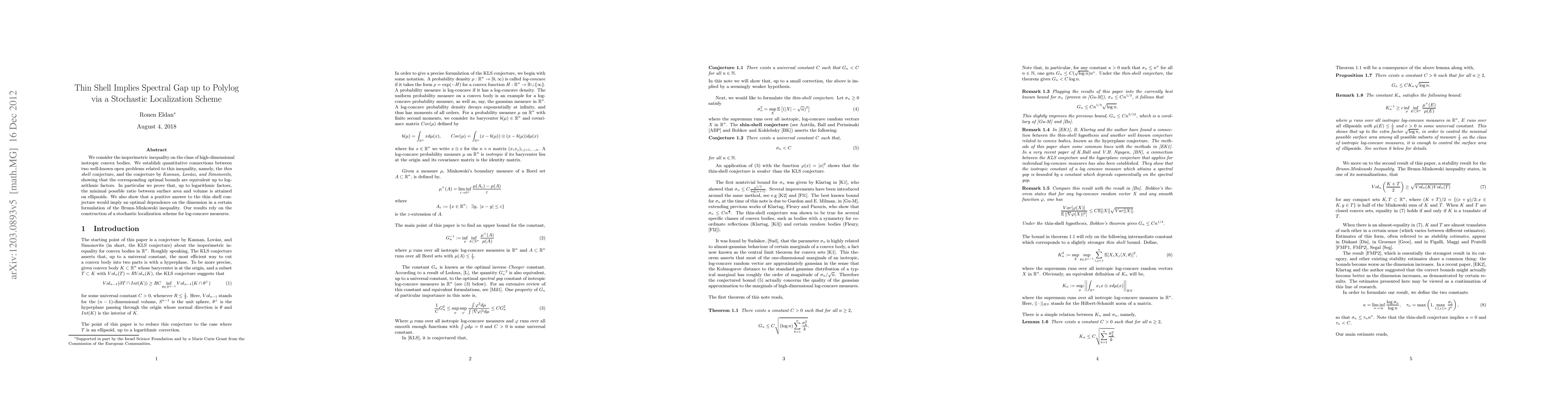 We consider the isoperimetric inequality on the class of high-dimensional isotropic convex bodies. We establish quantitative connections between two well-known open problems related to this inequality, namely, the thin shell conjecture, and the conjecture by Kannan, Lovasz, and Simonovits, showing that the corresponding optimal bounds are equivalent up to logarithmic factors. In particular we prove that, up to logarithmic factors, the minimal possible ratio between surface area and volume is attained on ellipsoids. We also show that a positive answer to the thin shell conjecture would imply an optimal dependence on the dimension in a certain formulation of the Brunn-Minkowski inequality. Our results rely on the construction of a stochastic localization scheme for log-concave measures.