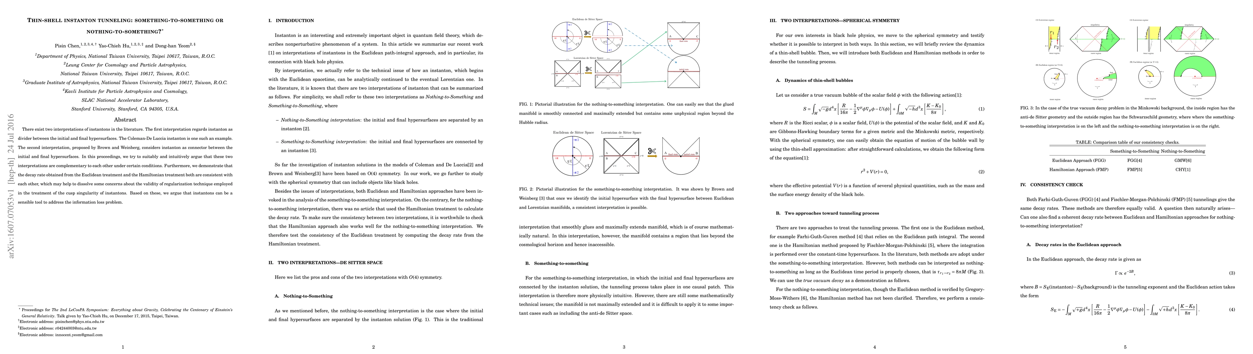 There exist two interpretations of instantons in the literature. The first interpretation regards instanton as divider between the initial and final hypersurfaces. The Coleman-De Luccia instanton is one such an example. The second interpretation, proposed by Brown and Weinberg, considers instanton as connector between the initial and final hypersurfaces. In this proceedings, we try to suitably and intuitively argue that these two interpretations are complementary to each other under certain conditions. Furthermore, we demonstrate that the decay rate obtained from the Euclidean treatment and the Hamiltonian treatment both are consistent with each other, which may help to dissolve some concerns about the validity of regularization technique employed in the treatment of the cusp singularity of instantons. Based on these, we argue that instantons can be a sensible tool to address the information loss problem.