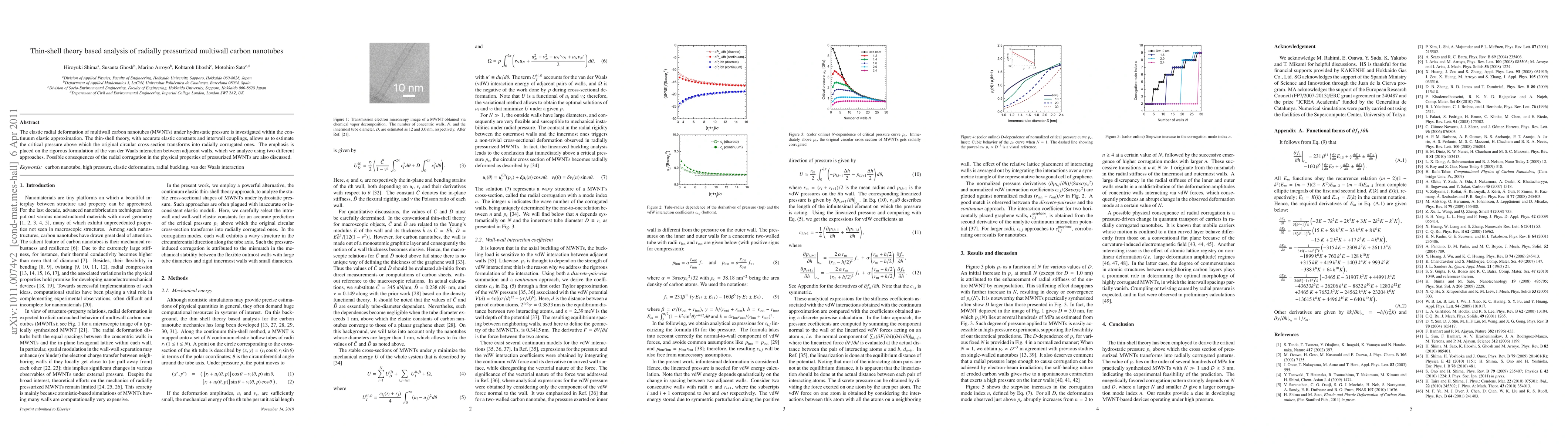 This paper investigates the elastic radial deformation of multiwall carbon nanotubes under hydrostatic pressure using thin-shell theory, estimating the critical pressure for cross-sectional transformation. It emphasizes the rigorous formulation of van der Waals interactions and discusses the physical implications of radial corrugation.