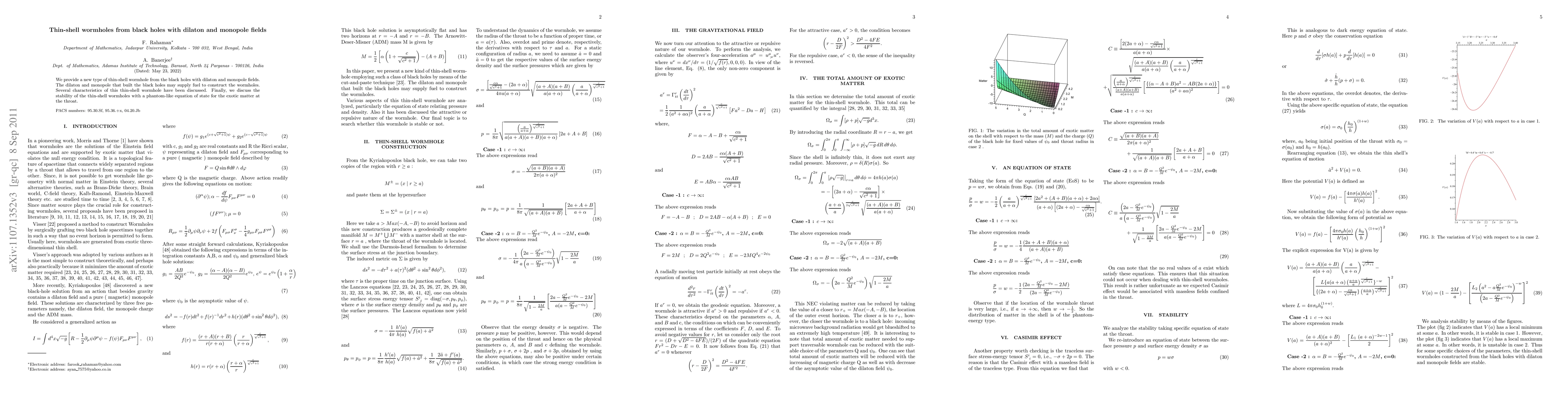 This paper introduces a novel thin-shell wormhole derived from black holes with dilaton and monopole fields, exploring its characteristics and stability, with a focus on the exotic matter's "phantom-like" equation of state at the throat.