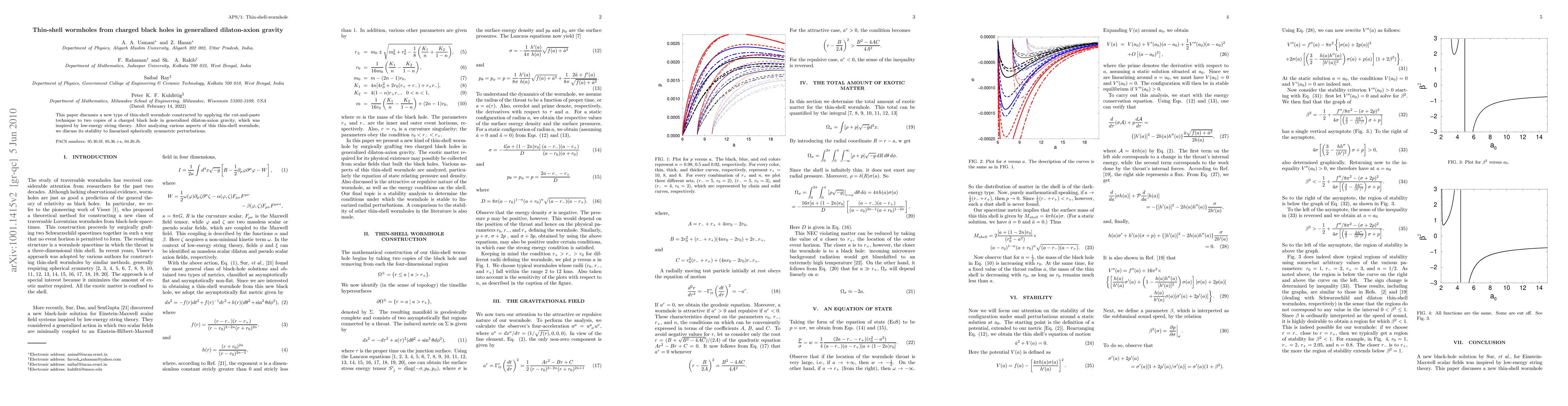 This paper constructs a thin-shell wormhole from charged black holes using the cut-and-paste technique in generalized dilaton-axion gravity, inspired by string theory, and analyzes its stability against spherically symmetric perturbations.