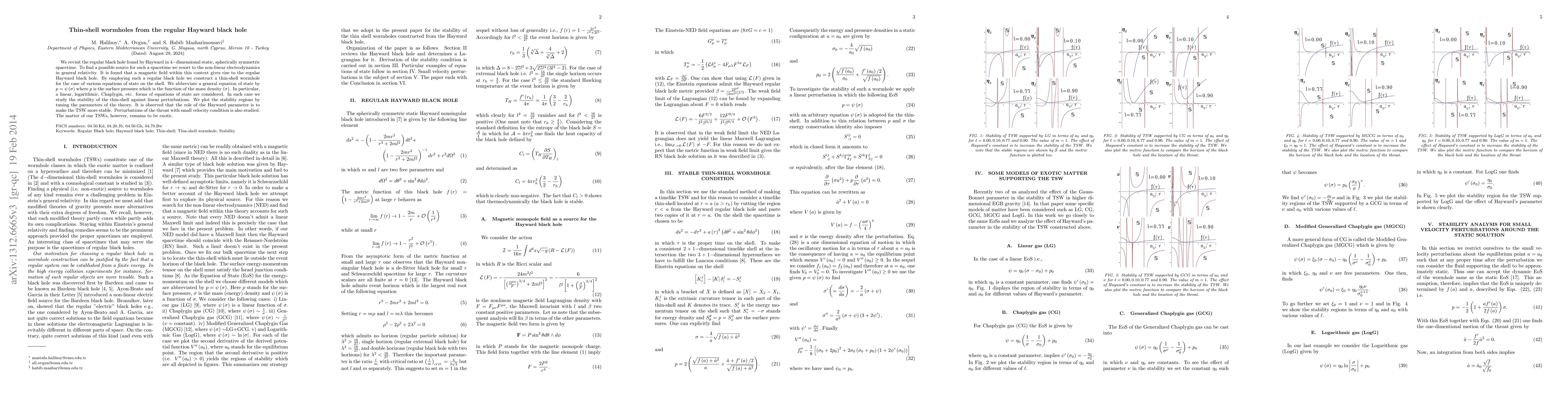 We revisit the regular black hole found by Hayward in $4-$dimensional static, spherically symmetric spacetime. To find a possible source for such a spacetime we resort to the non-linear electrodynamics in general relativity. It is found that a magnetic field within this context gives rise to the regular Hayward black hole. By employing such a regular black hole we construct a thin-shell wormhole for the case of various equations of state on the shell. We abbreviate a general equation of state by $p=\psi \left( \sigma \right) $ where $p$ is the surface pressure which is the function of the mass density ($\sigma $). In particular, a linear, logarithmic, Chaplygin, etc. forms of equations of state are considered. In each case we study the stability of the thin-shell against linear perturbations. We plot the stability regions by tuning the parameters of the theory. It is observed that the role of the Hayward parameter is to make the TSW more stable. Perturbations of the throat with small velocity condition is also studied. The matter of our TSWs, however, remains to be exotic.