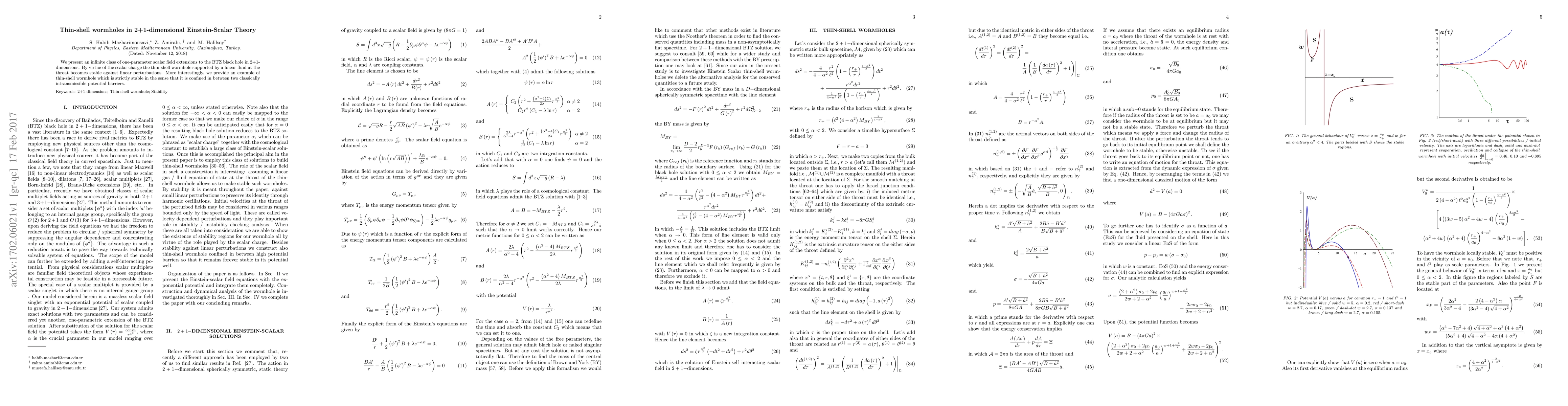This paper introduces a new class of scalar field extensions to the BTZ black hole in 2+1-dimensional Einstein-Scalar Theory, demonstrating the stability of thin-shell wormholes supported by a linear fluid. It also presents a uniquely stable thin-shell wormhole confined between two classically intransmissible potential barriers.
