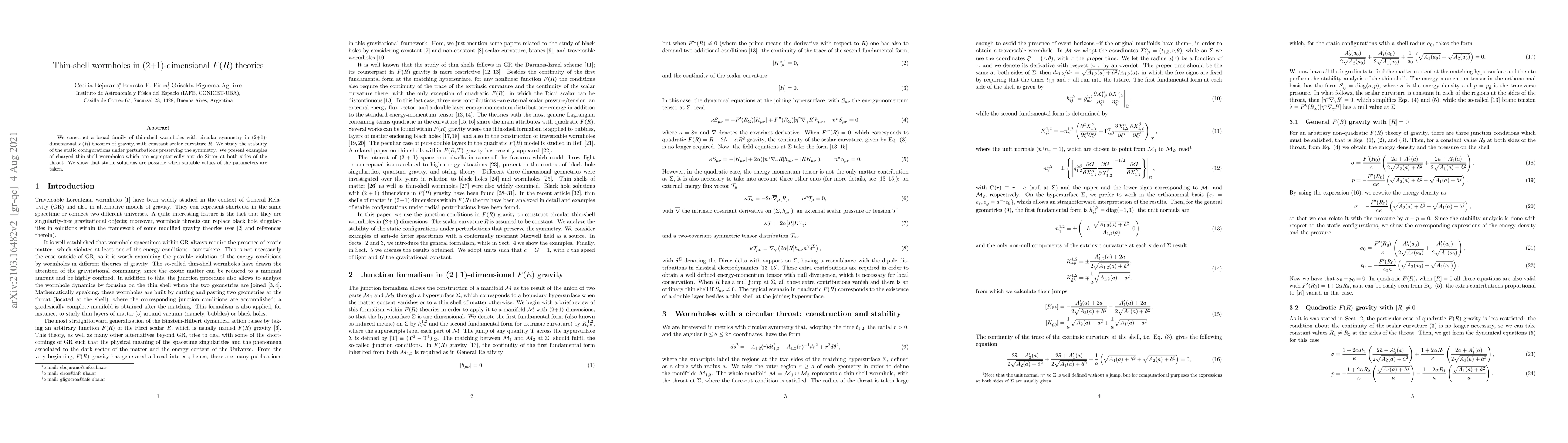 We construct a broad family of thin-shell wormholes with circular symmetry in (2+1)-dimensional F(R) theories of gravity, with constant scalar curvature R. We study the stability of the static configurations under perturbations preserving the symmetry. We present charged thin-shell wormholes as examples of spacetimes with a negative cosmological constant. We show that stable solutions are possible when suitable values of the parameters are taken.